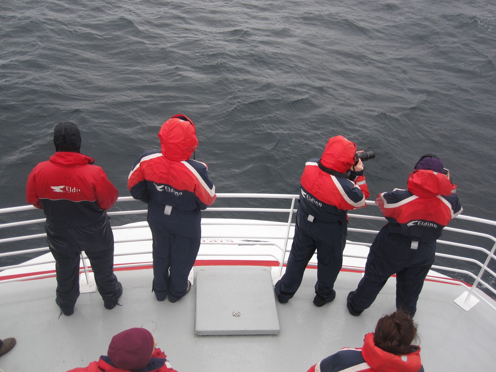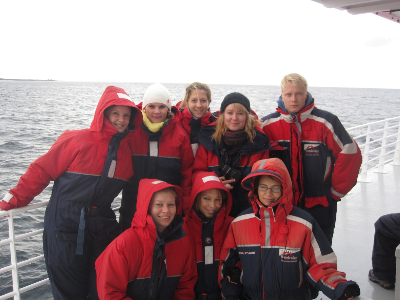 Suurlähetystöstä saimme myös vinkin aivan ihanasta lounaspaikasta, nimeltään Sægreifinn. Siellä kaikki saivat valita mieleisensä kalavartaan, jotka sitten jaoimme sulassa sovussa. Halukkaat saivat myös maistaa islantilaista erikoisuutta, lahtivalasta (minke whale).Lounaan jälkeen vuorossa oli valassafari. Ostettuamme liput kiipesimme alukseen. Päällemme saimme lämpimät ja vedenpitävät haalarit, onneksi, sillä kastumiselta ei voinut välttyä. Onneksemme lipun hintaan kuului myös pahoinvointipilleri ja aikamoista keinutusta olikin luvassa. Valaita emme valitettavasti nähneet, mutta saimme nauttia raikkaasta meri-ilmasta ja oppaan kertomasta valasinfosta. Korvaukseksi siitä, ettemme nähneet valaita, saimme ilmaiset liput uudelle valassafarille. Liput ovat voimassa kaksi vuotta, joten ehkäpä matka käy Islantiin uudelleen kahden vuoden sisällä. 🙂