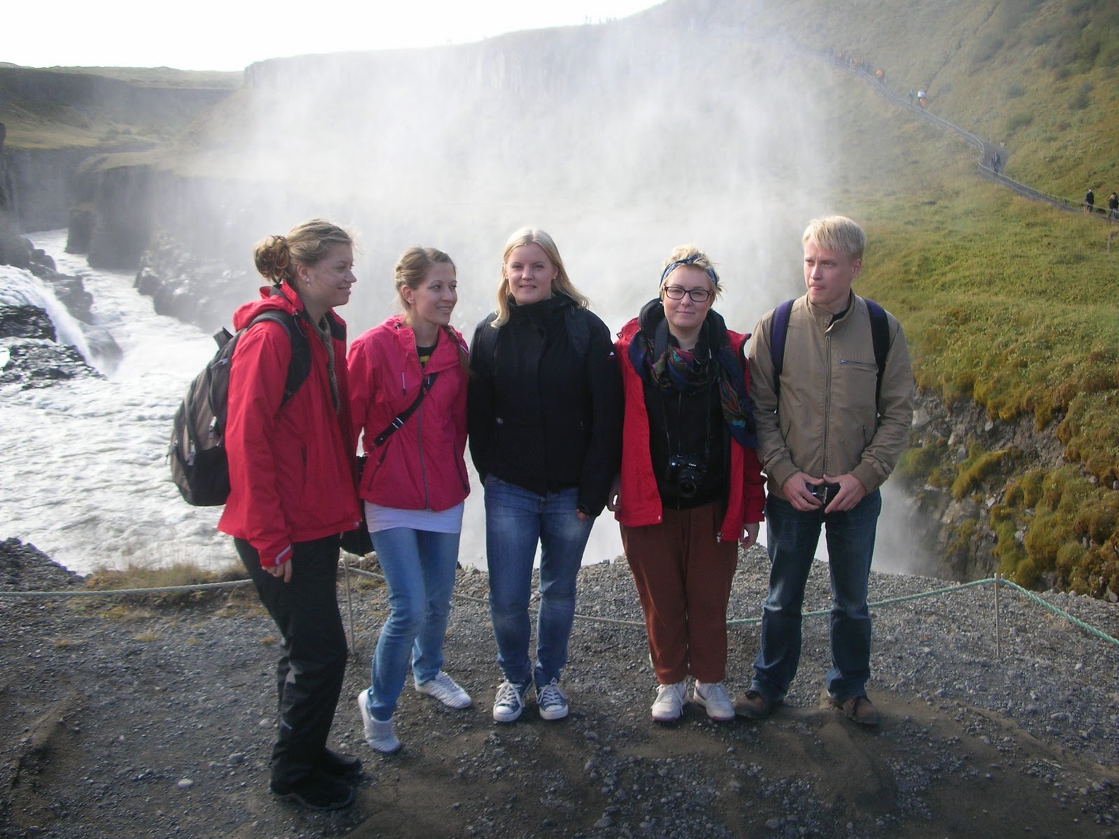 Gullfoss, jonka 30 metriä korkea putous syöksyi valtavalla vyöryvällä voimalla korkeassa, kapeassa rotkossa oli vaikuttava näky. Laskeuduttaessa rotkon seinämän kielekkeelle ihmettelemään lähempää Hvita-joen myllerrystä ja pauhua, saivat TOPNilaiset ihastella auringonpaisteen johdosta synkän putouksen välttäneiden ja ilmaan tanssimaan jääneiden vesipisaroiden muodostamaa värikästä sateenkaarta.