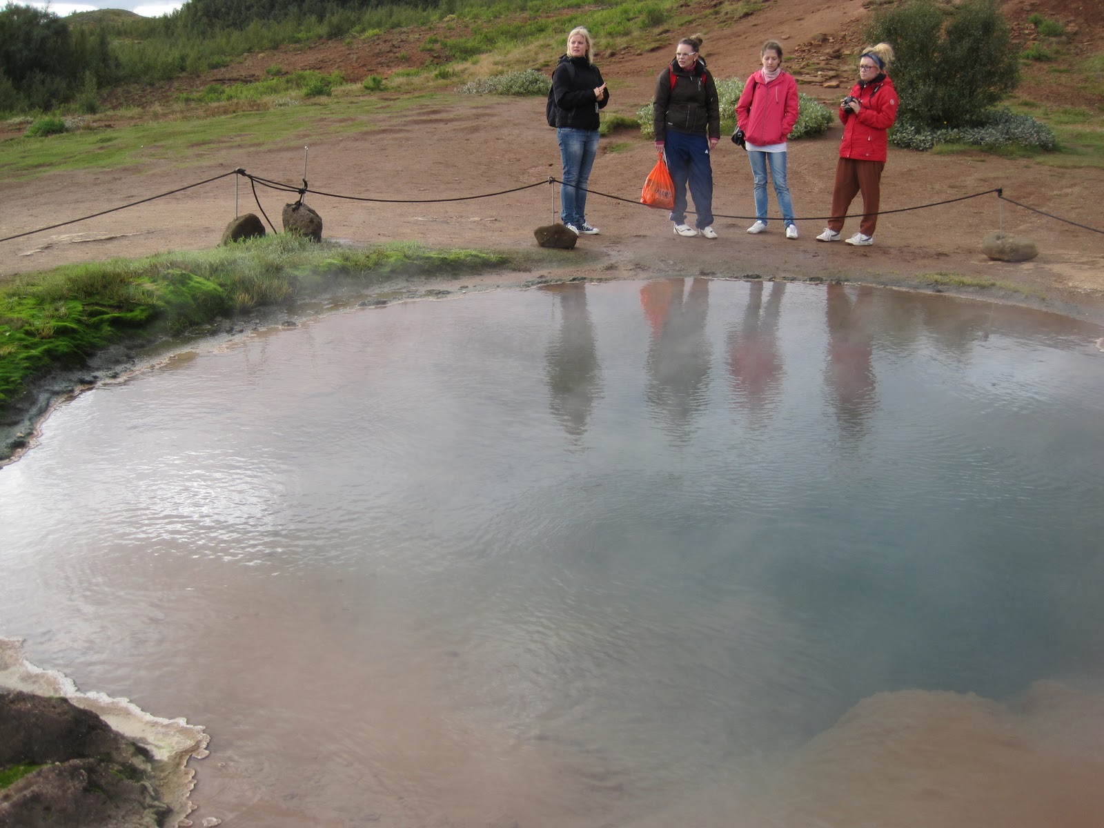 TOPNilaisten geologian ja biologian tiedot pääsivät koetukselle, kun geotermian ja luonnonvoimien näyttämöllä saimme seurata tulen ja veden taistelua silmiemme edessä Haukadalurin kauniiden ja kirkkaiden kuumien lähteiden puistossa. Pääsimme lisäksi harjoittelemaan nopeita sormirefleksejä valokuvauksessa, sillä kohtuullisen säännöllisesti noin 10 minuutin väleissä 25-35 metriä ilmaan purkautuva Geysirin sukulainen Strokkur oli hyvin nopea ja ennalta-arvaamaton liikkeissään. Itse vanha Geysir, joka on antanut nimensä kaikille maailman muillekin vastaaville kuumille lähteille pulputteli rauhallisesti ilmakuplan silloin, toisen tällöin.