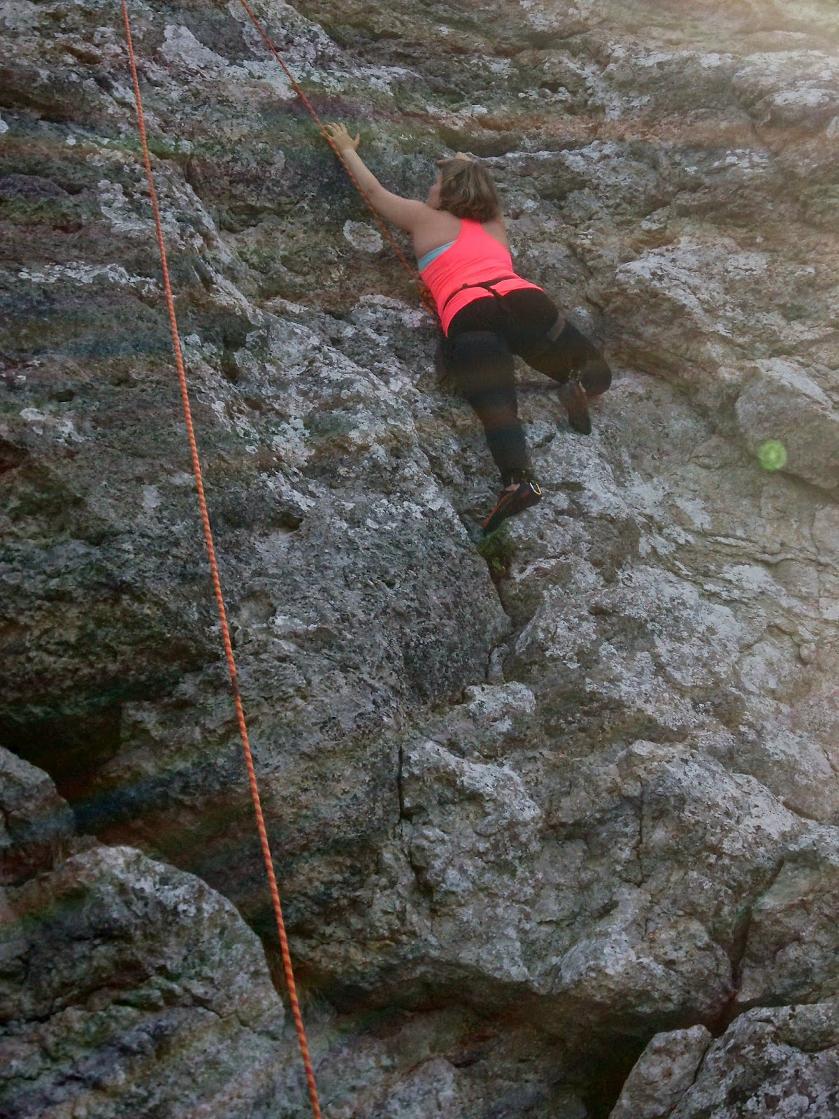 Sää oli aurinkoinen ja juuri sopivan lämmin pyöräilyä ajatellen. Pyörän selästä oli mahtavaa katsella kauniita maisemia ja saaren herttaisia taloja. Välillä tuntui kuin pyöräilisi Peppi-elokuvassa. Matka sujui leppoisasti ja pian olimmekin perillä Högklintillä, jossa tapasimme Martinin. Martin oli varattu hostellin kautta pitämään meille kalliokiipeilyä. Jokainen pääsi kiipeämään vuorollaan. Varusteena oli erityiset kiipeilykengät ja turvavaljaat. Kiipesimme siis paljasta kalliota pitkin ilman mitään apuvälineitä. Kokemus oli kaikkien mielestä aivan mahtava, vaikkakin varsin raskas, ja osa totesi ryhtyvänsä jopa lajin harrastajiksi. Kiipeilyn lomassa grillailimme ja nautimme syyskuun lämpimästä auringosta ja upeasta merimaisemasta.